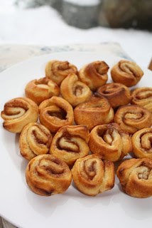 put them on a plate and dribble with icing made with icing sugar, a teaspoon or 2 of maple syrup and a teaspoon or two of milk and a little pinch of cinnamon.